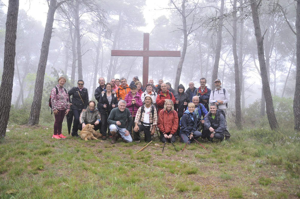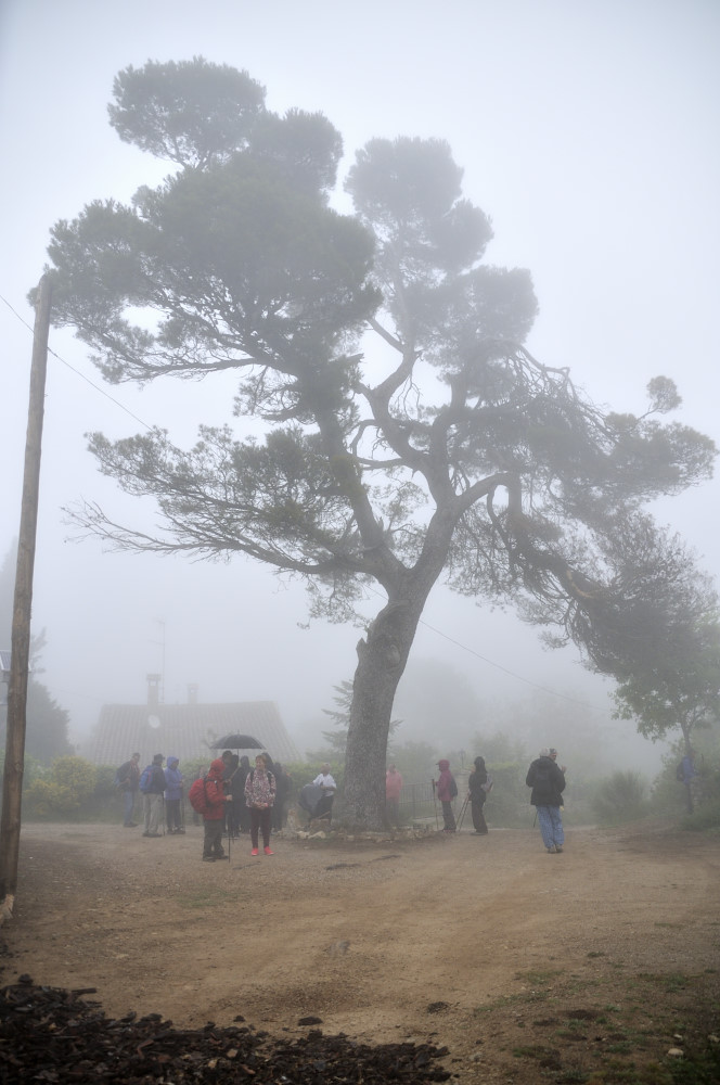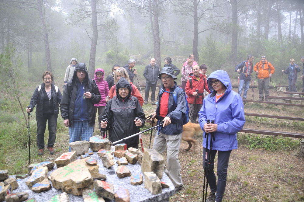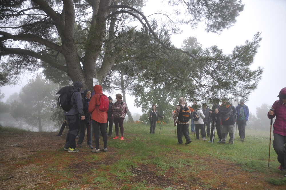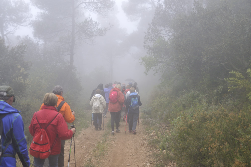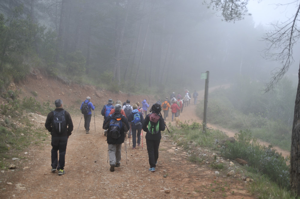 Caminada per la Serra del Bolet, Cova del Bolet i Fonts de les Conilles i de Llinars amb una persistent boira pixanera feta el 8/5/2016 amb la participació de 26 caminadors
