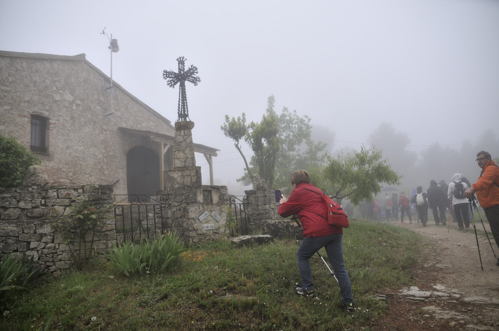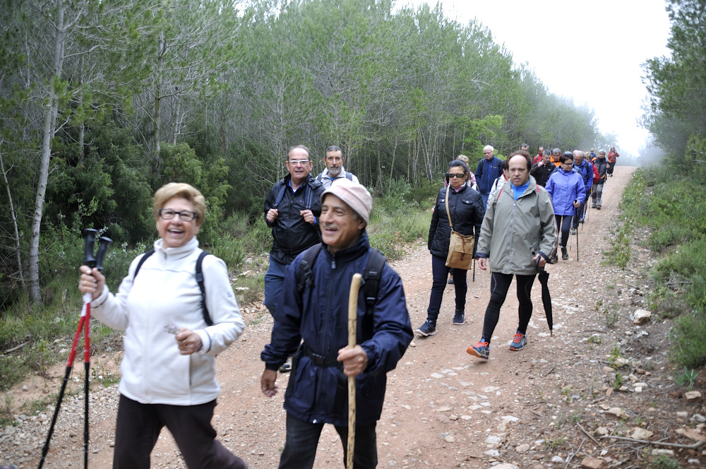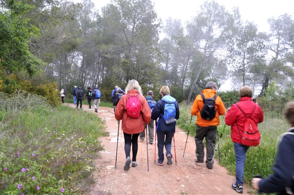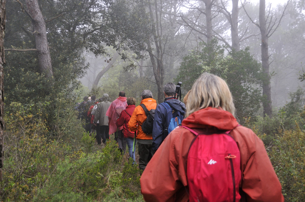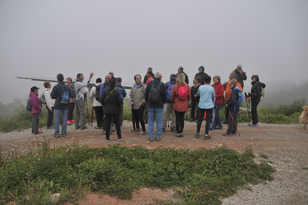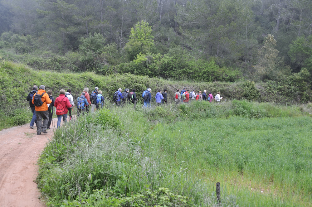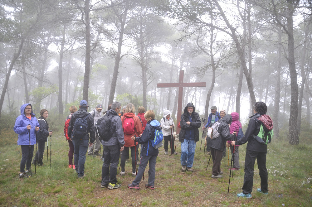 Caminada per la Serra del Bolet, Cova del Bolet i Fonts de les Conilles i de Llinars amb una persistent boira pixanera feta el 8/5/2016 amb la participació de 26 caminadors