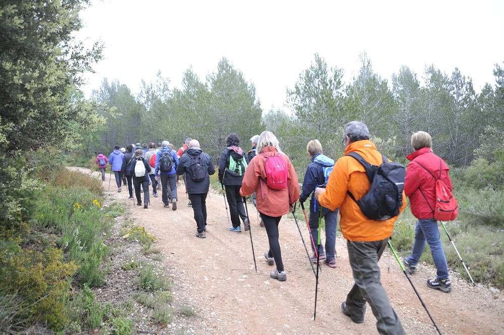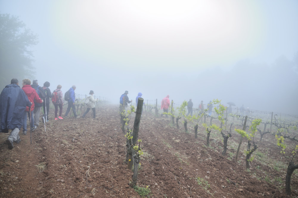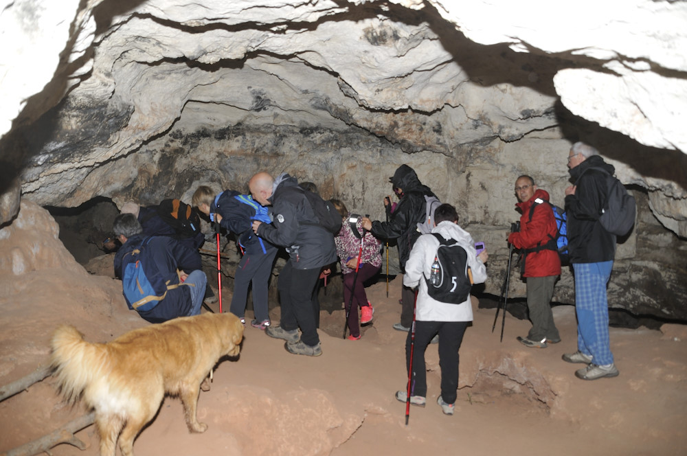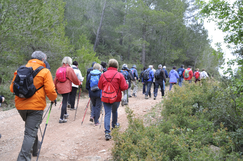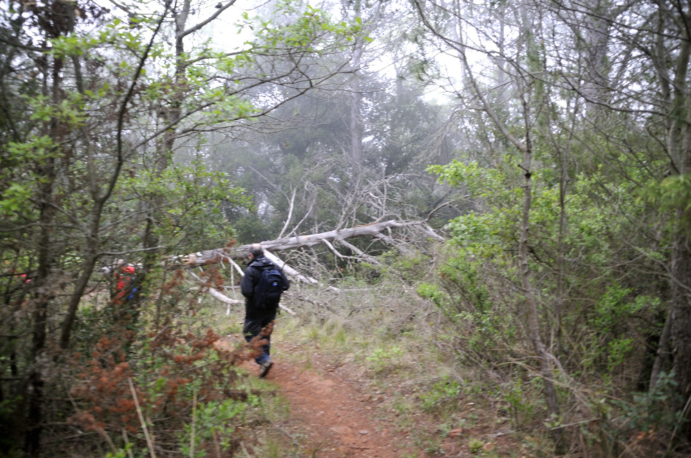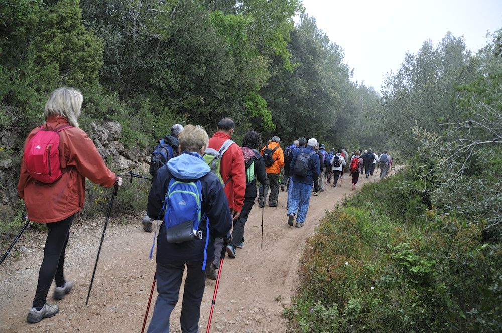 Caminada per la Serra del Bolet, Cova del Bolet i Fonts de les Conilles i de Llinars amb una persistent boira pixanera feta el 8/5/2016 amb la participació de 26 caminadors