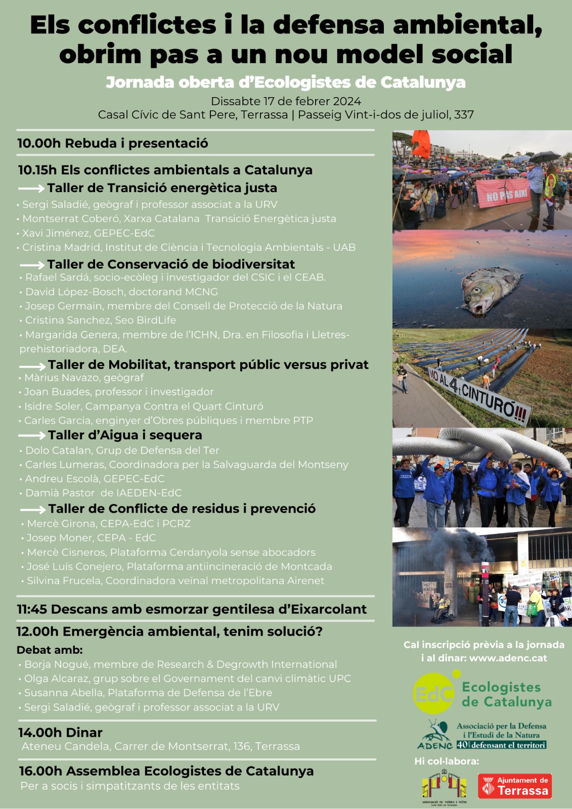 La jornada comptarà amb diferents tallers, xerrades i debats durant al matí. A la tarda es celebrarà l’assemblea d’Ecologistes de Catalunya oberta a tots els socis del GEPEC-EdC i a les demés entitats membres d’Ecologistes de Catalunya.