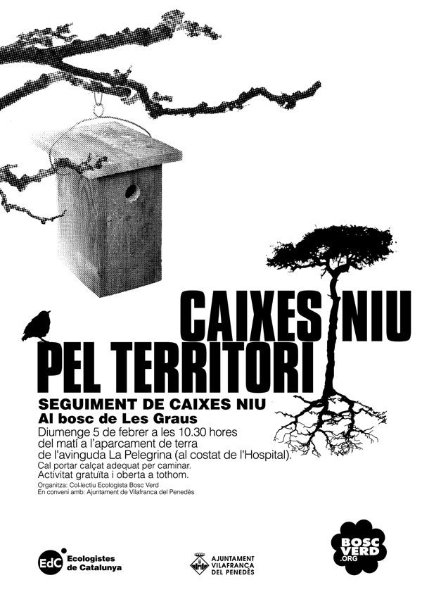 El Col·lectiu Ecologista Bosc Verd organitza per aquest diumenge 5 de febrer una sortida de seguiment de les caixes niu que tenim instal·lades al bosc de Les Graus.